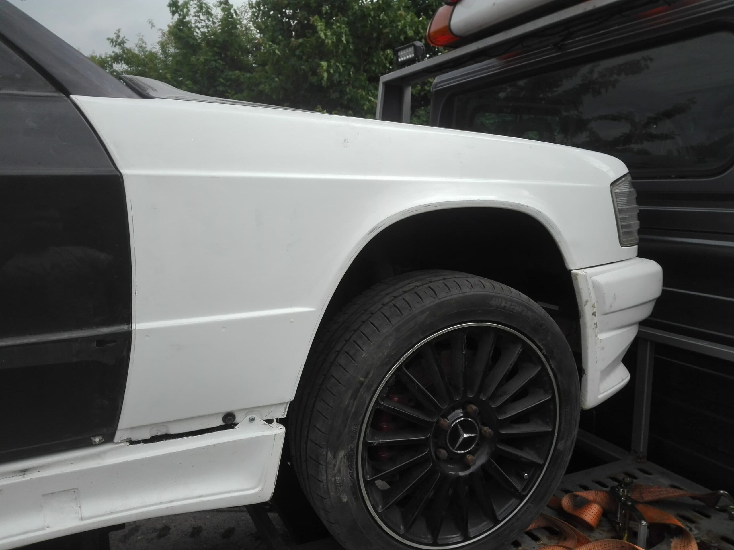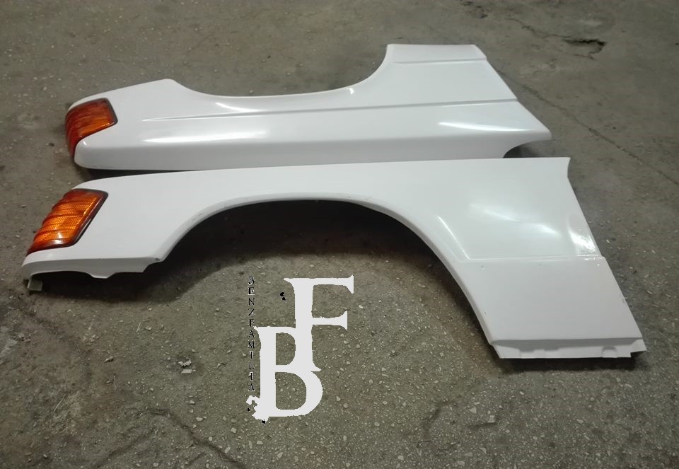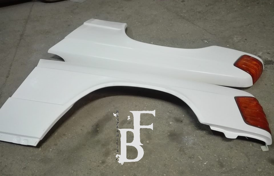 Błotniki do Mercedesa W201 wykonane z włókna szklanego. Dzięki zastosowaniu tego materiału, stają się one bardzo dobrym zamiennikiem, który nie jest podatny na rdzę. Błotniki pasują w miejsca montażowe w karoserii.