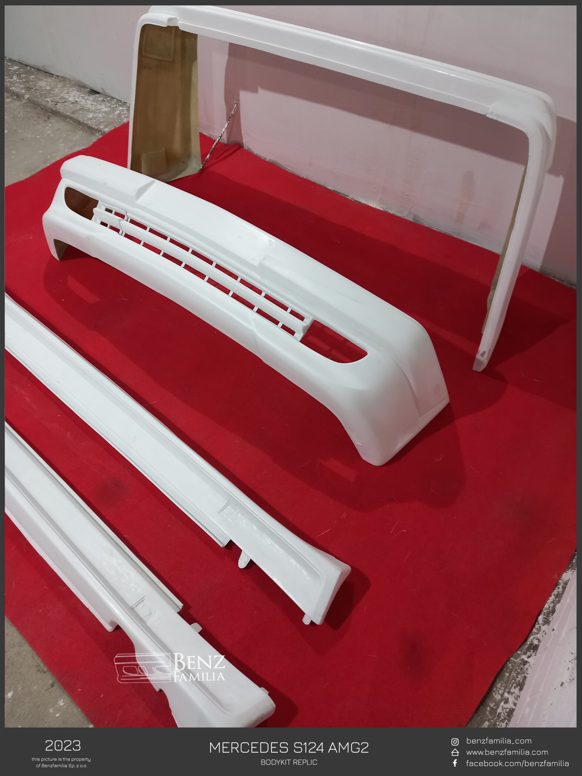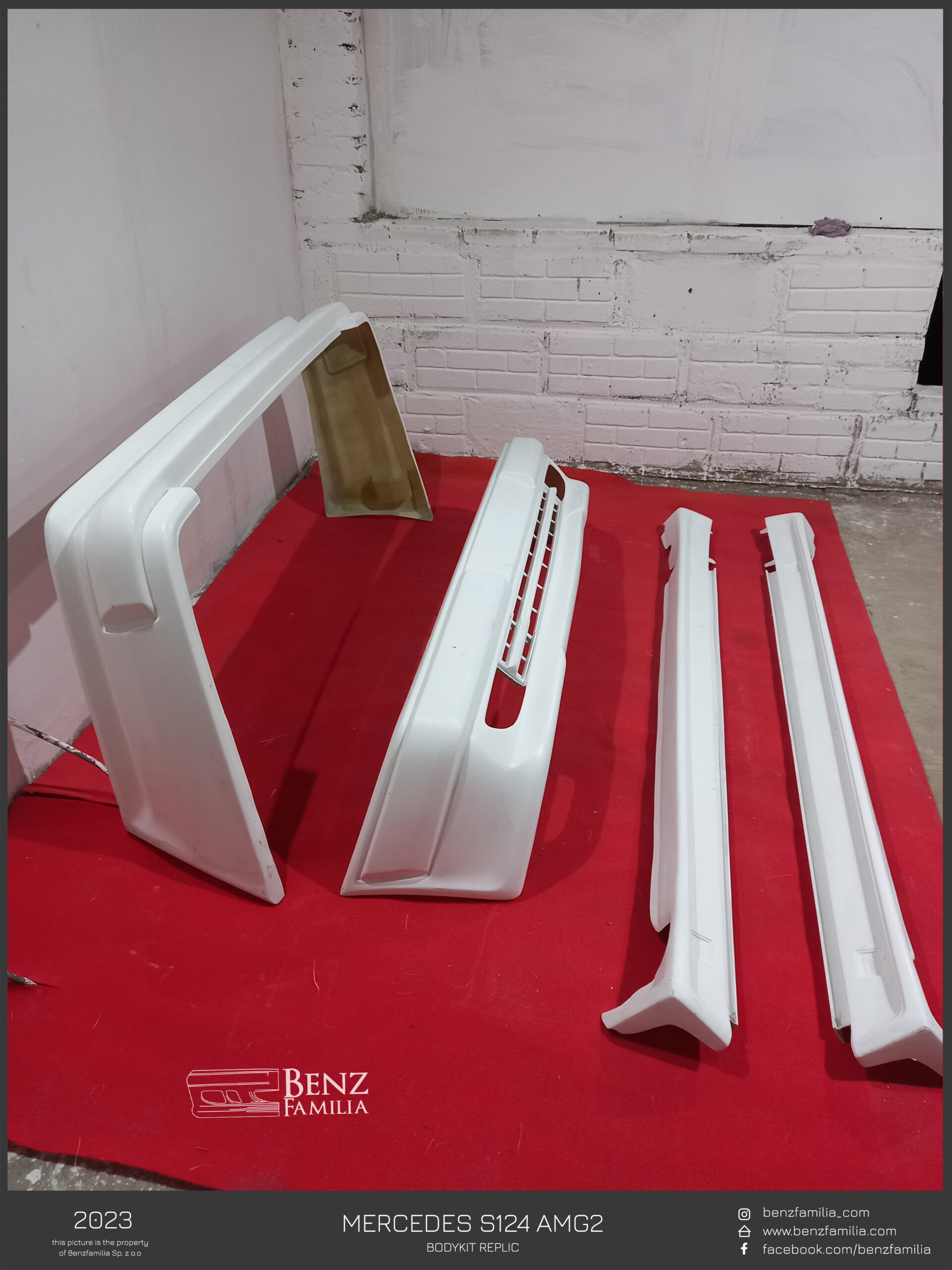 Replika pakietu stylistycznego AMG przeznaczona do Mercedesa W124 w wersji kombi, dedykowanego do modeli wyprodukowanych po 1993 roku – wersji e-klasa. Elementy wykonane z włókna szklanego.